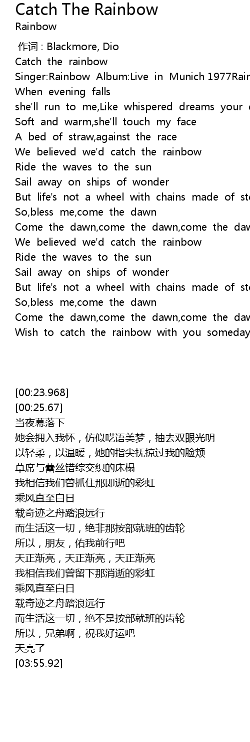 | [00:25.67] | Singer: Rainbow Album: Live in Munich 1977Rainbow |