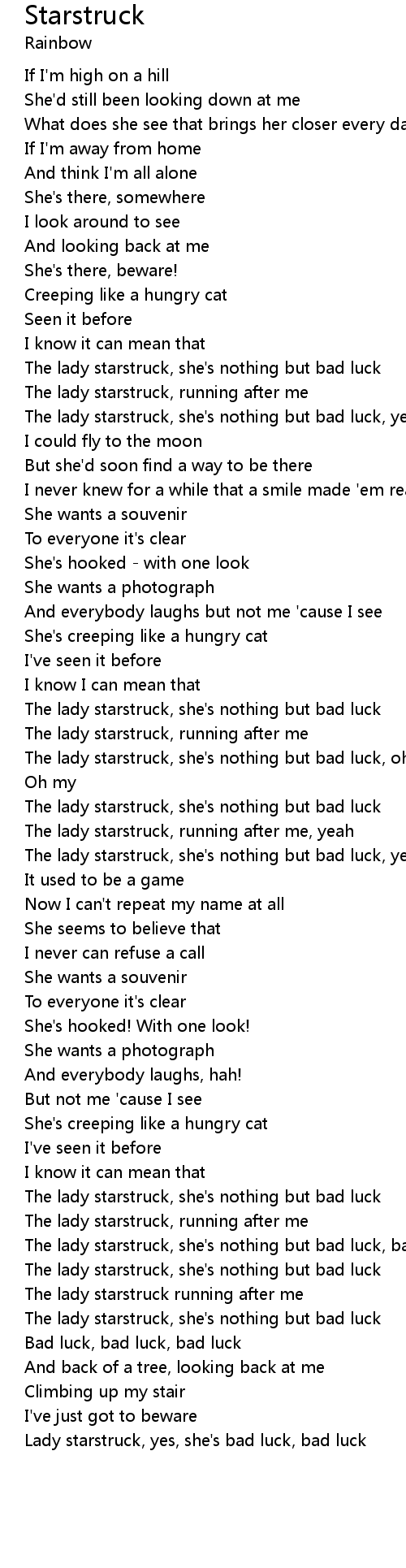 | [03:57.75] | Lady starstruck, yes, she's bad luck, bad luck |