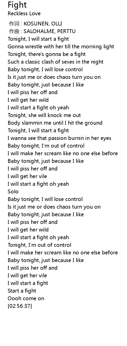 | [00:20.10] | Tonight, there's gonna be a fight |