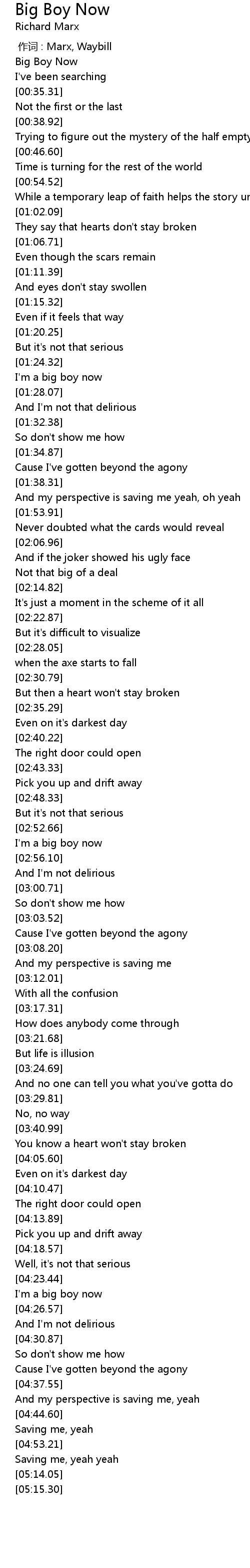 | [02:54.16] | I' m a big boy now |