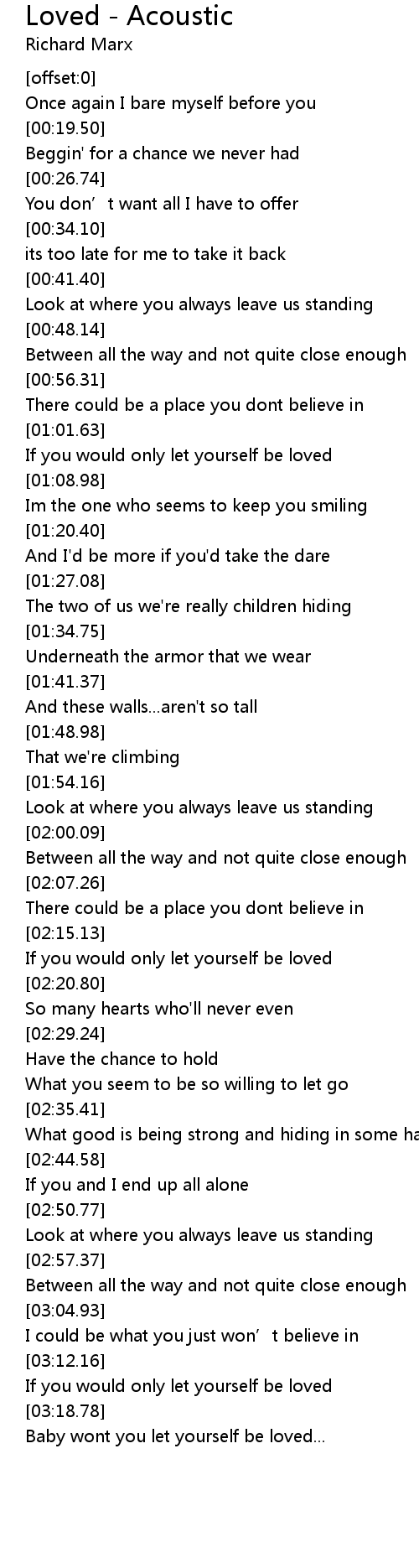 | [03:21.28] | Baby wont you let yourself be loved... |