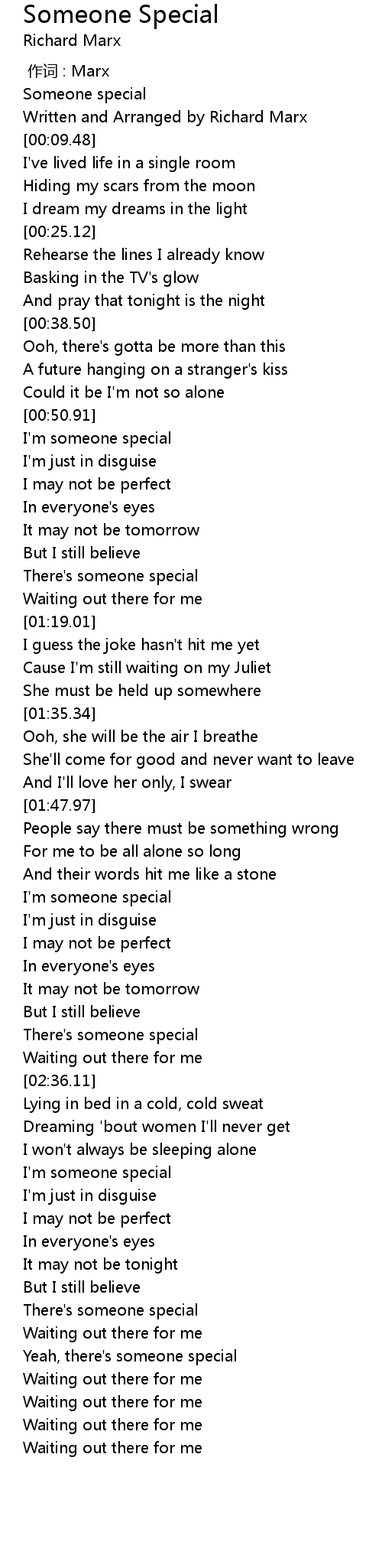| [03:00.36] | I'm someone special |