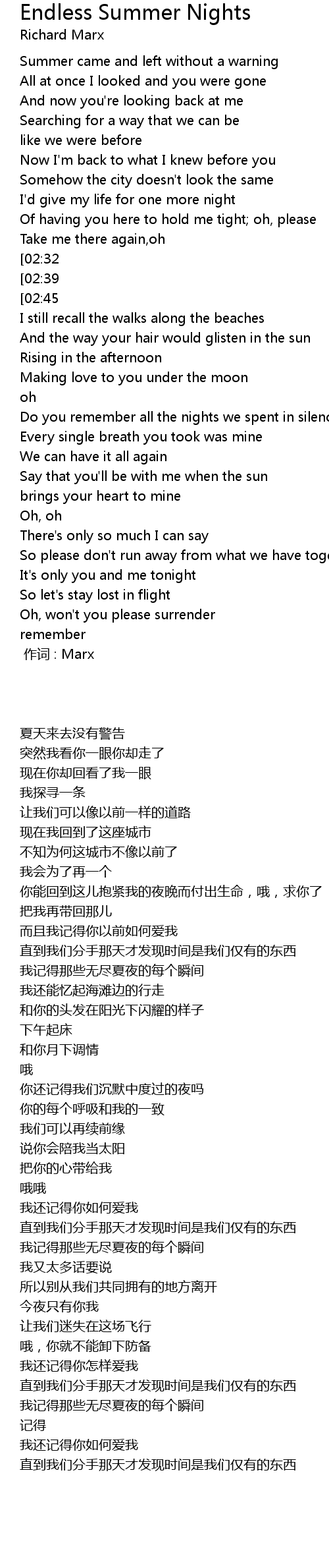 | [01:33][02:45][03:55] | I remember every moment of those endless summer nights |