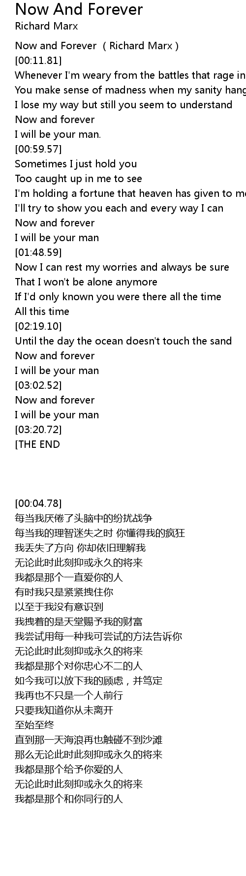| [00:04.78] | Now and Forever (Richard Marx) |
