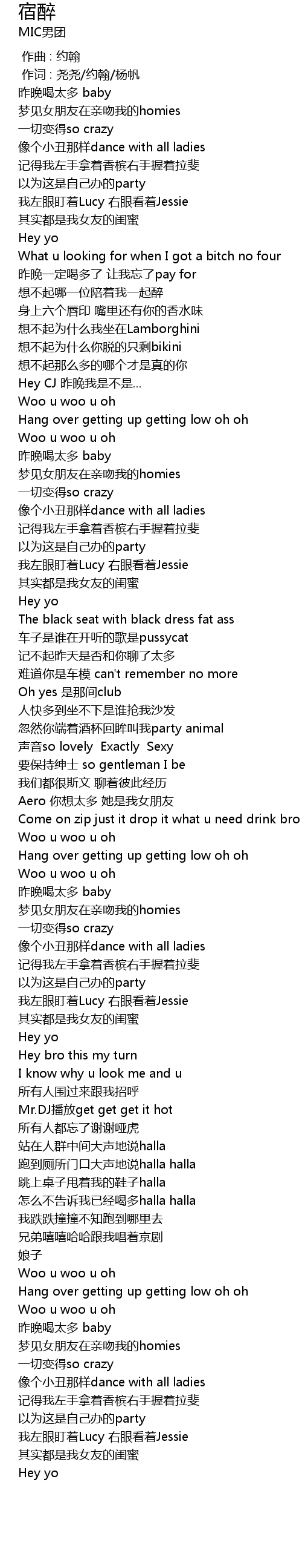 | [02:58.808] | 怎么不告诉我已经喝多halla halla |