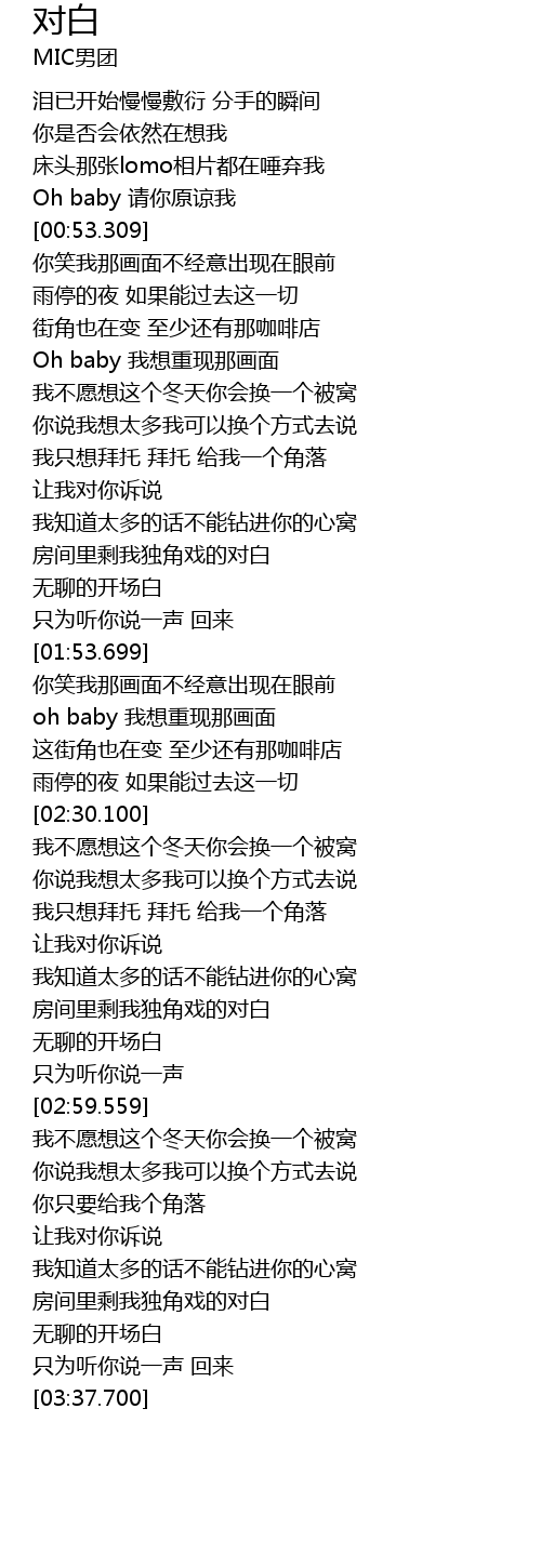 | [03:24.700] | 房间里剩我独角戏的对白 |