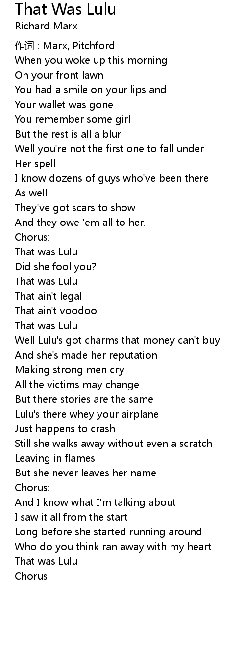 | Song | That Was Lulu |
