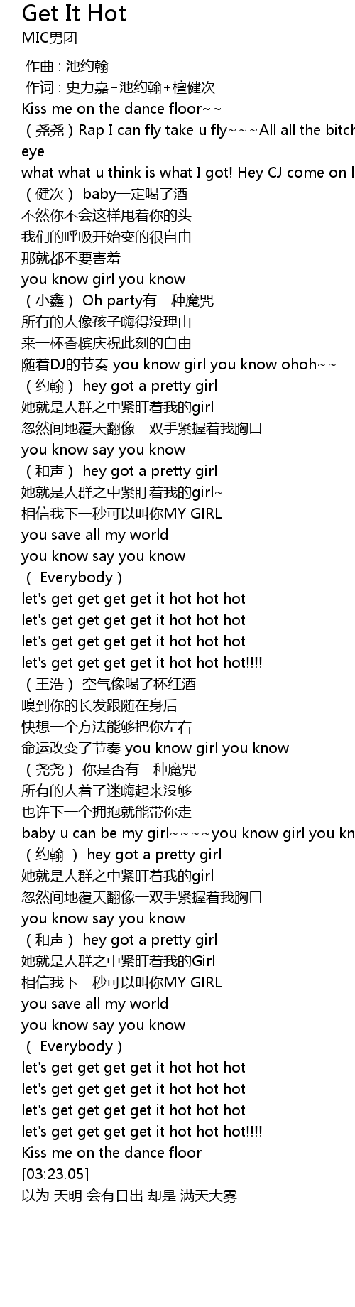 | [03:04.79] | let' s get get get get it hot hot hot!!!! |