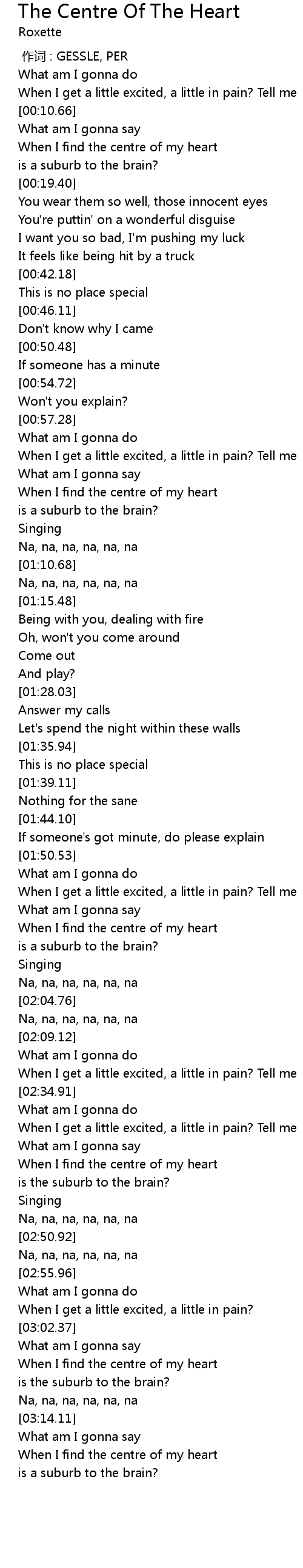 | [02:44.83] | When I find the centre of my heart |