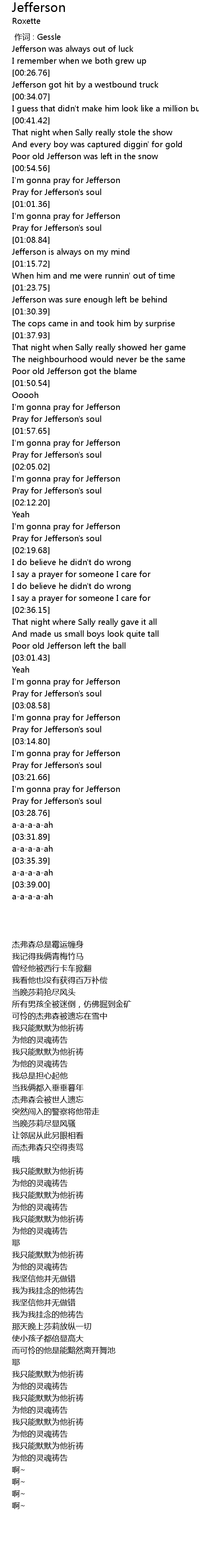 | [00:56.43] | I' m gonna pray for Jefferson |