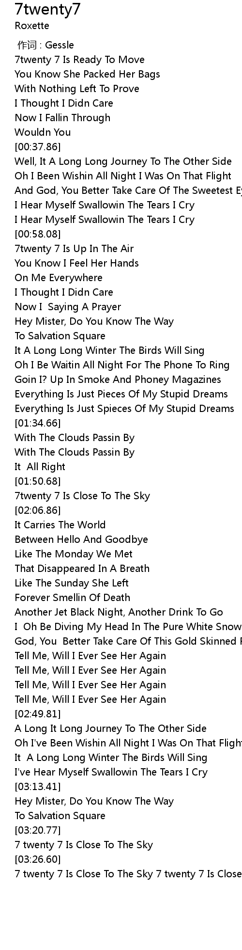 | [03:21.77] | 7 twenty 7 Is Close To The Sky |