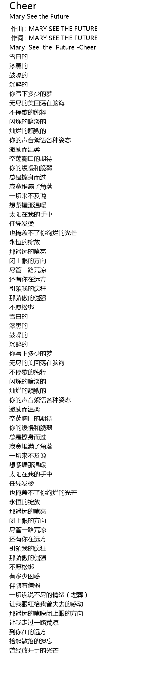 | [00:00.319] | 作词 : MARY SEE THE FUTURE |