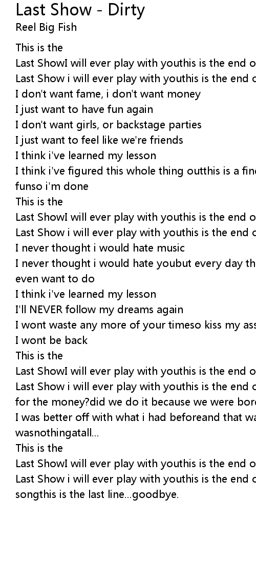 Last Show i will ever play with youthis is the end of what we dothis is the last songthis is the last line...goodbye. |