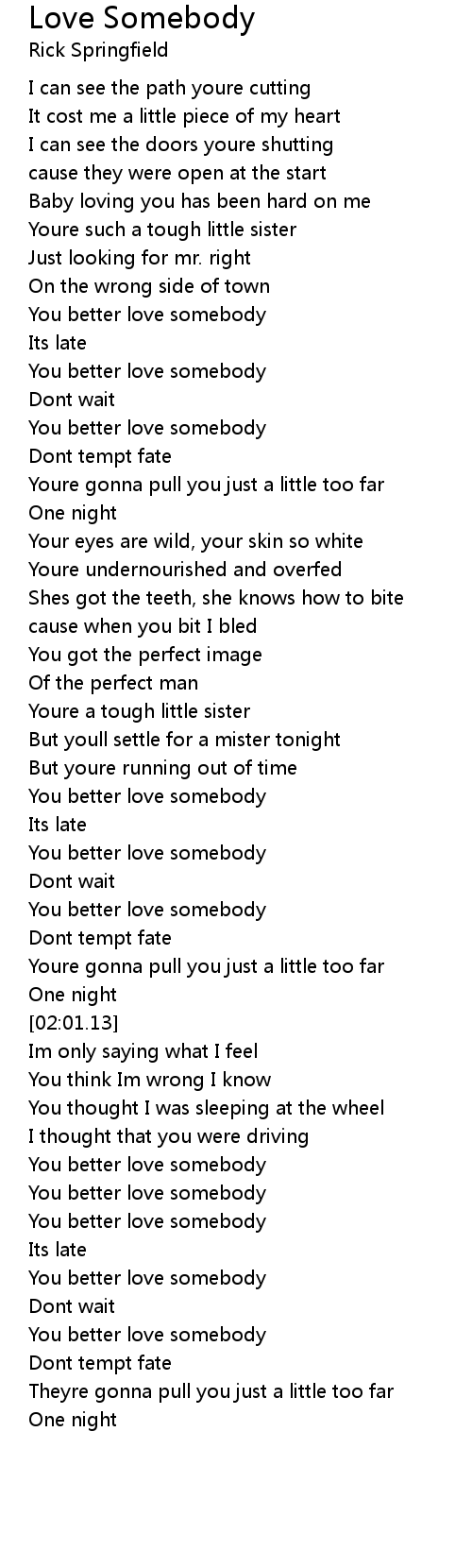 You better love somebody |
