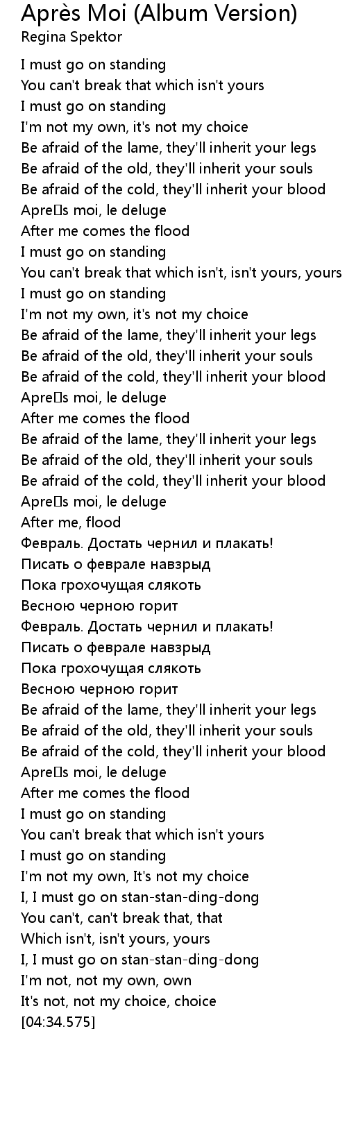 | [02:29.112] | After me, flood |