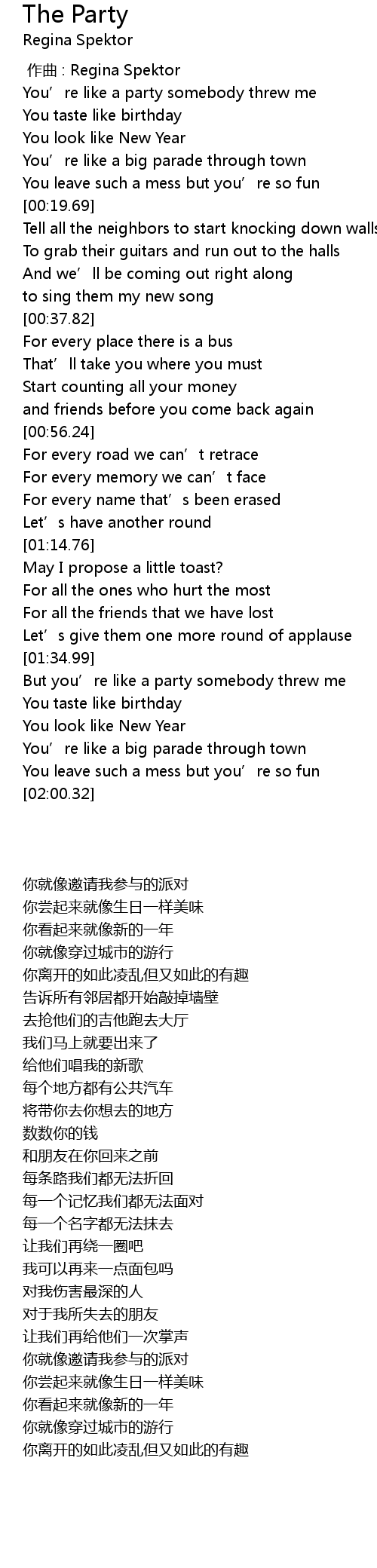 | [00:00.00] | zuò qǔ : Regina Spektor |