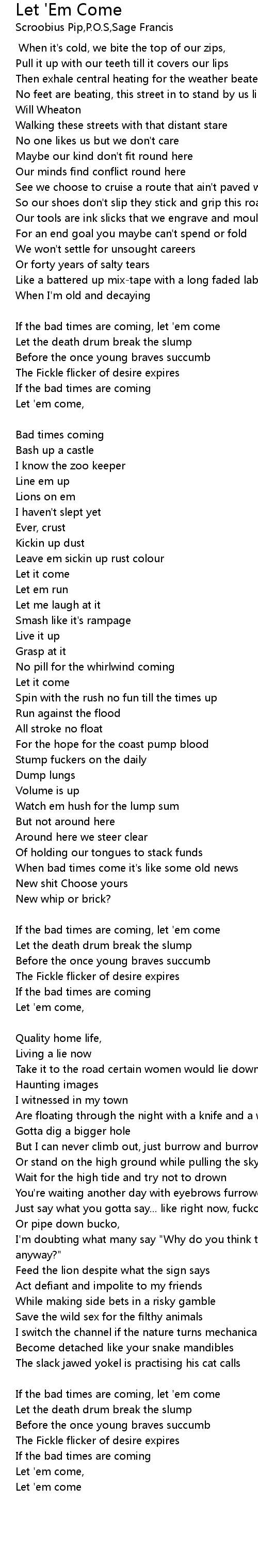 Let 'em come [P.O.S:] |