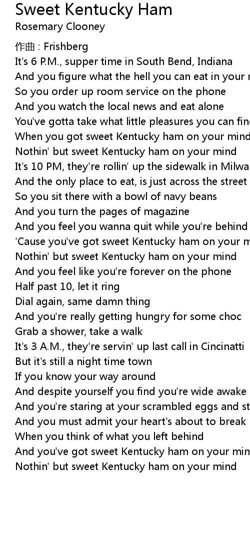 | When you got sweet Kentucky ham on your mind, on your mind | |