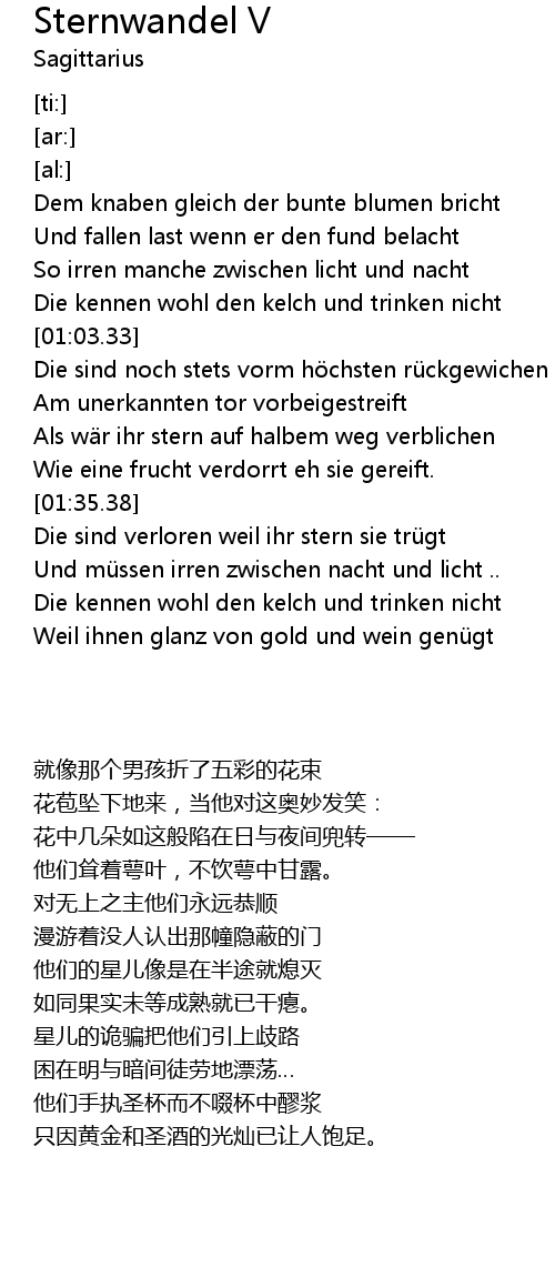 | [01:36.33] | Die sind verloren weil ihr stern sie trügt |