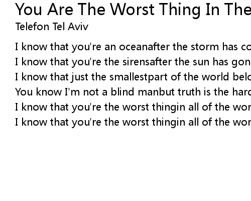 | I know that you're the worst thingin all of the world for me. |