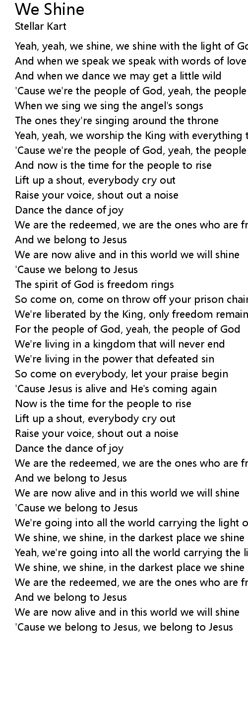 Yeah, yeah, we shine, we shine with the light of God |