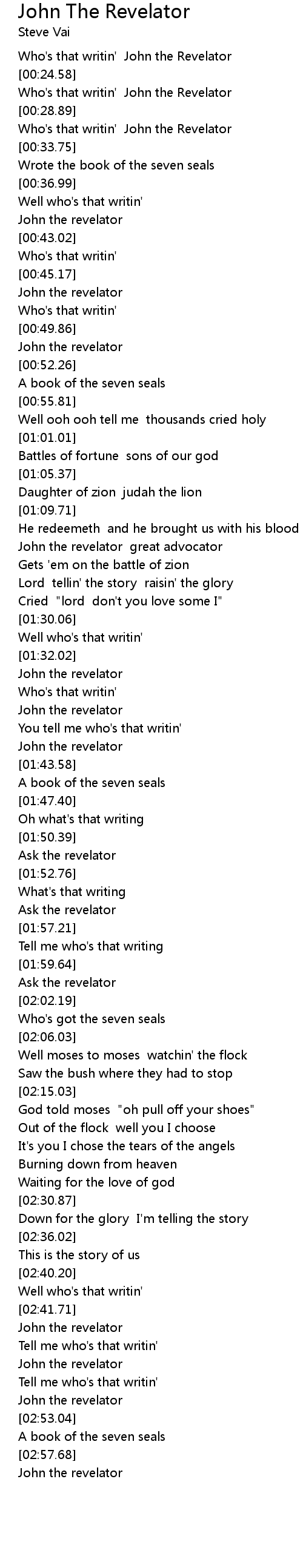 Who's that writin' John the Revelator |