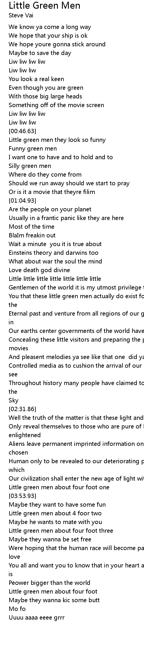 | [04:17.36] | Little green men about 4 foor two |
