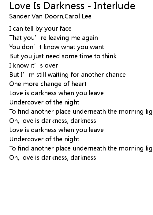 | Oh, love is darkness, darkness | |