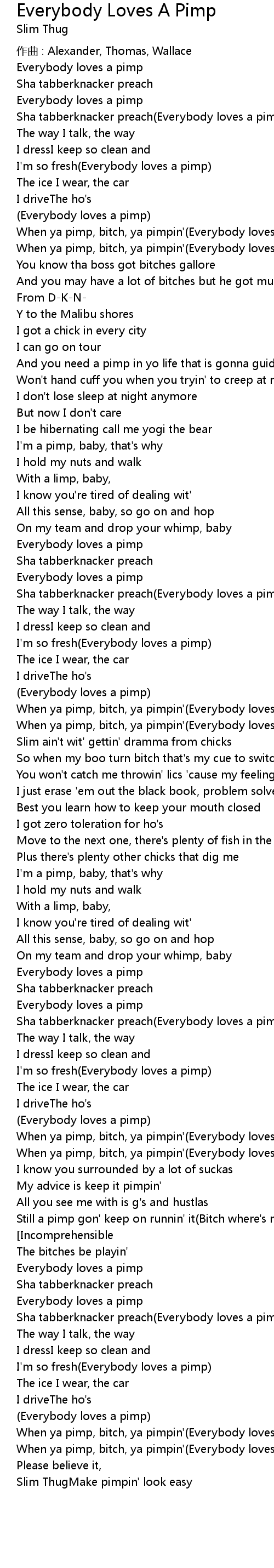 | Sha tabberknacker preach Everybody loves a pimp | |