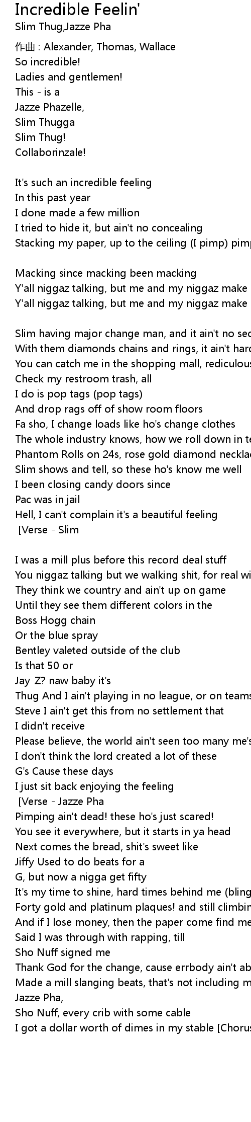 | From being broke on ya ass to having cash to the ceiling [Chorus] [Verse - Slim Thug] | |
