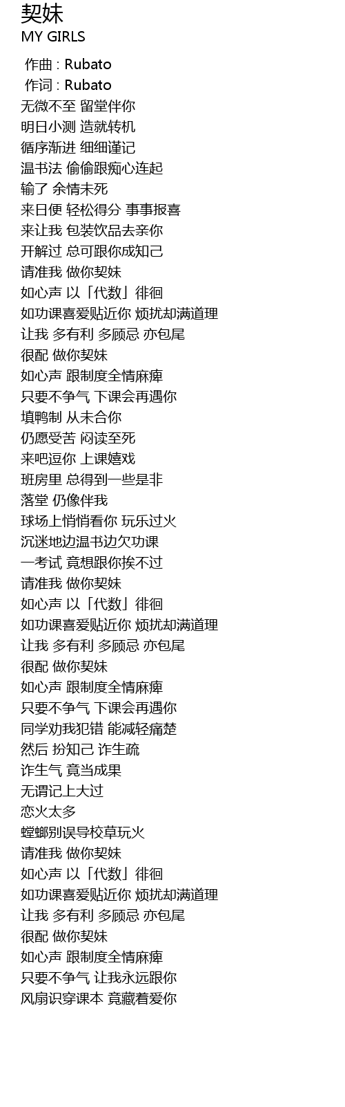 | [01:42.34] | 请准我 做你契妹 |