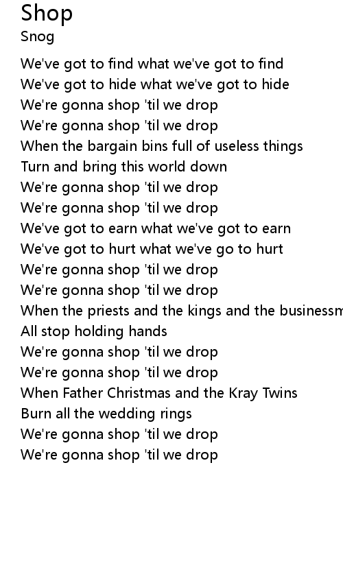 We're gonna shop 'til we drop |
