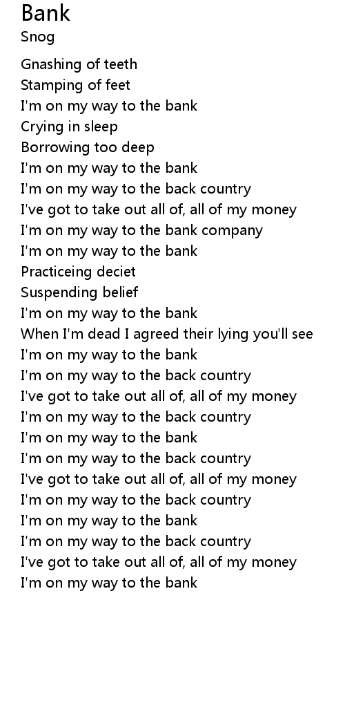 I'm on my way to the bank company |