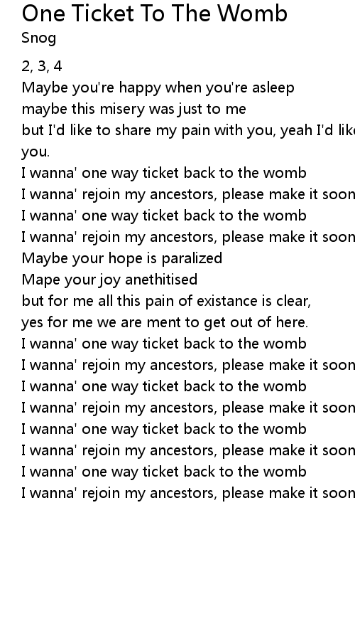I wanna' one way ticket back to the womb |