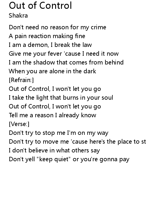 | Out of Control, I won't let you go | |
