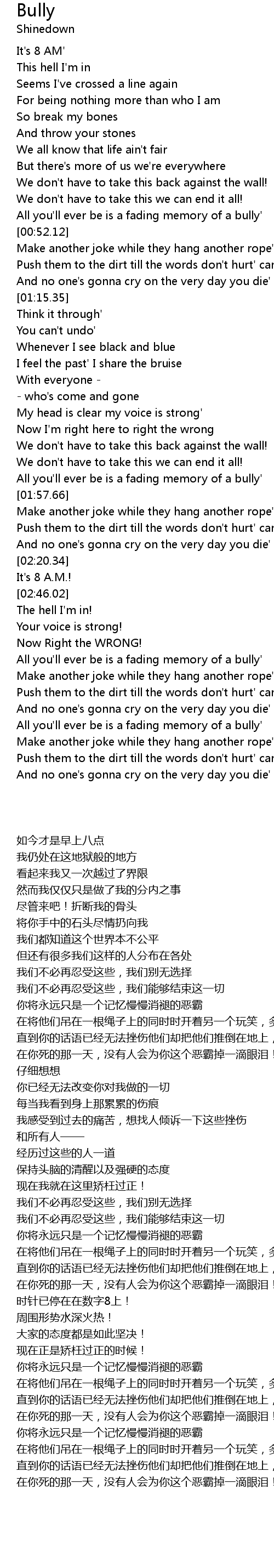 | [00:49.24] | All you'll ever be is a fading memory of a bully' |