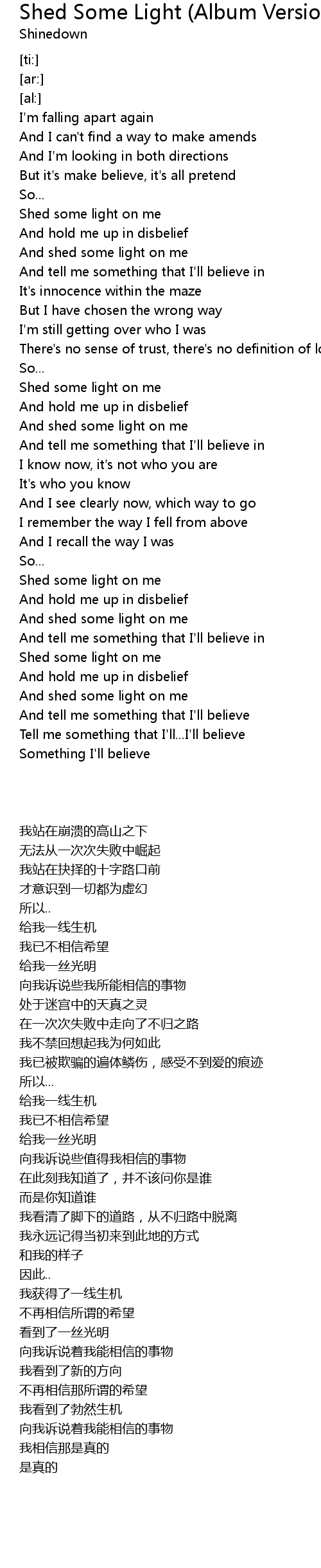 And shed some light on me |