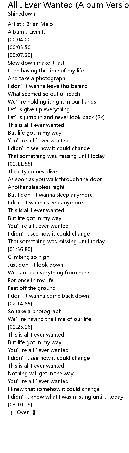 | [03:12.60][00:04.00] | Title: All I Ever Wanted |