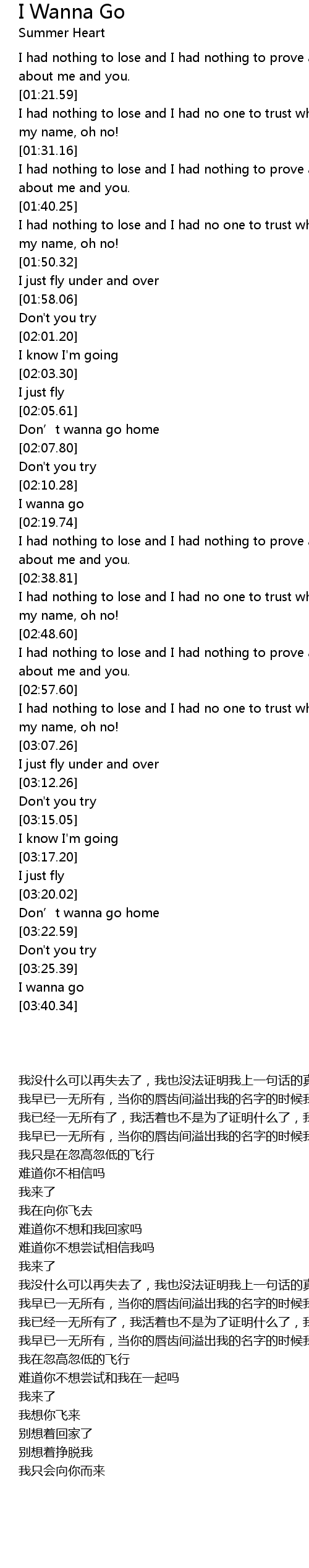 | [02:49.53] | I had nothing to lose and I had nothing to prove and I was thinking about me and you. |