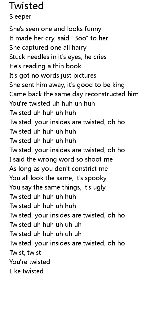 | [01:20.90] | Twisted uh huh uh huh |