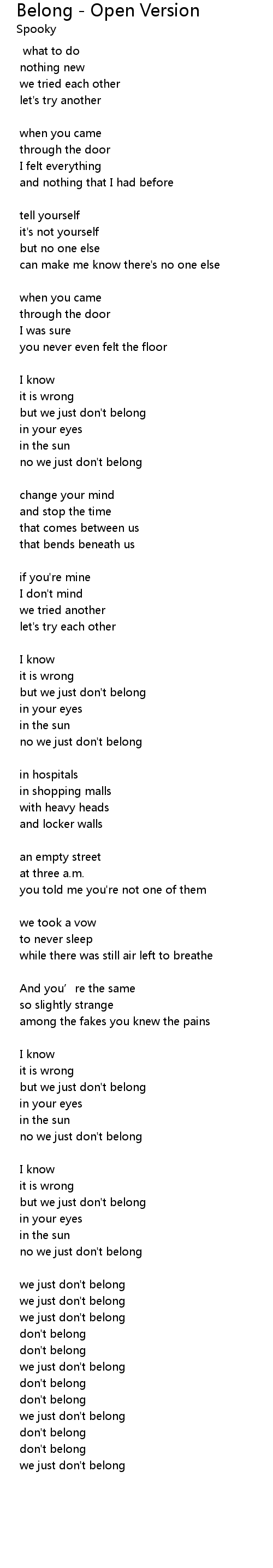 | but we just don' t belong | |