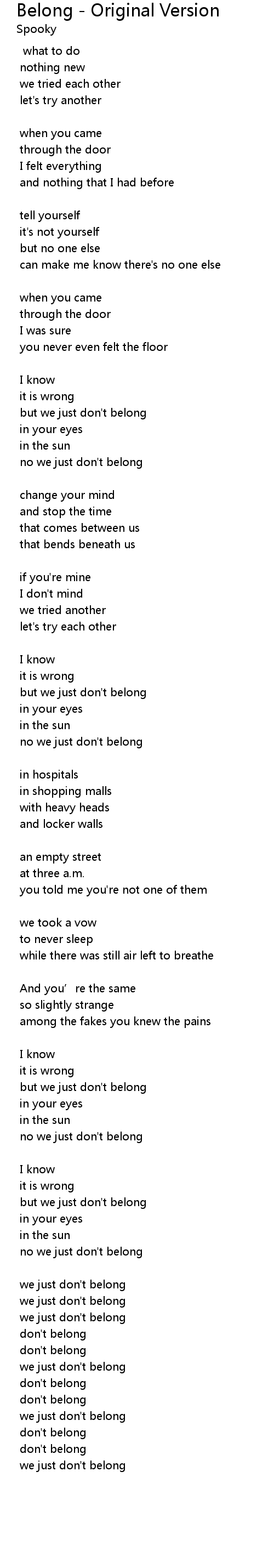 | but we just don't belong | |