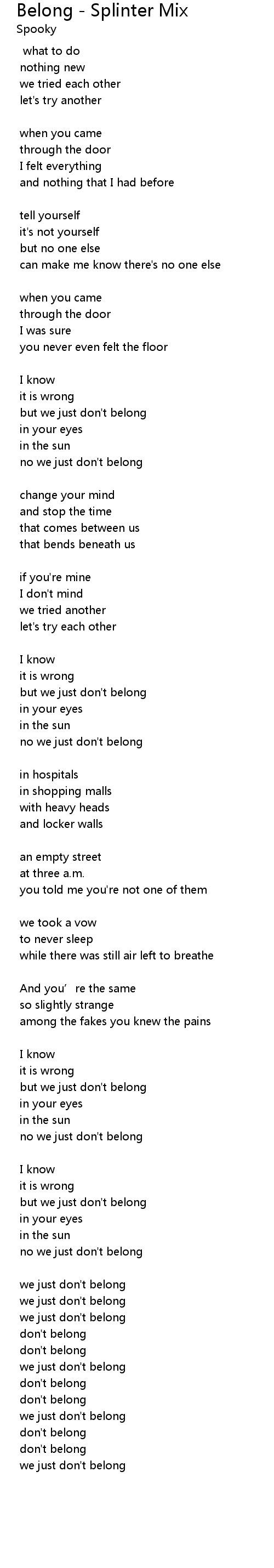 | but we just don't belong | |