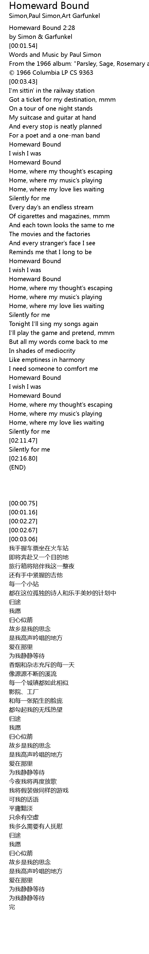 | [01:57.15] | Homeward Bound |