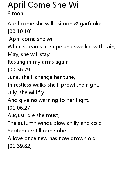 | [00:00.00] | April come she will--simon & garfunkel |