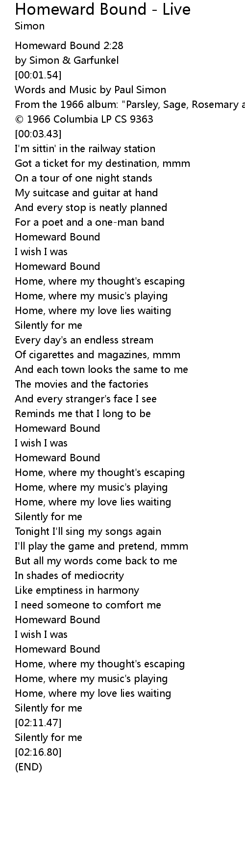 | [00:02.67] | From the 1966 album: "Parsley, Sage, Rosemary and Thyme" |
