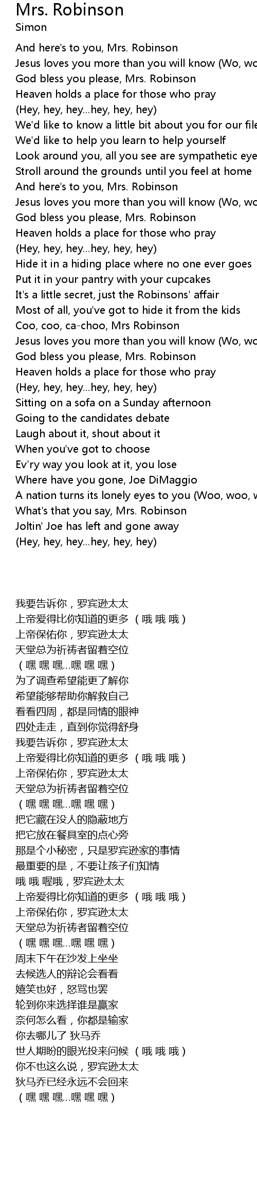 Coo, coo, ca-choo, Mrs Robinson |