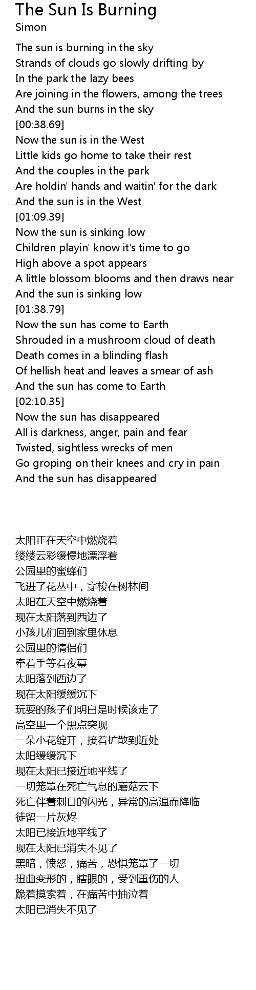 And the sun burns in the sky |