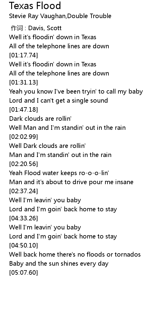 | [01:20.57] | Well it's floodin' down in Texas |