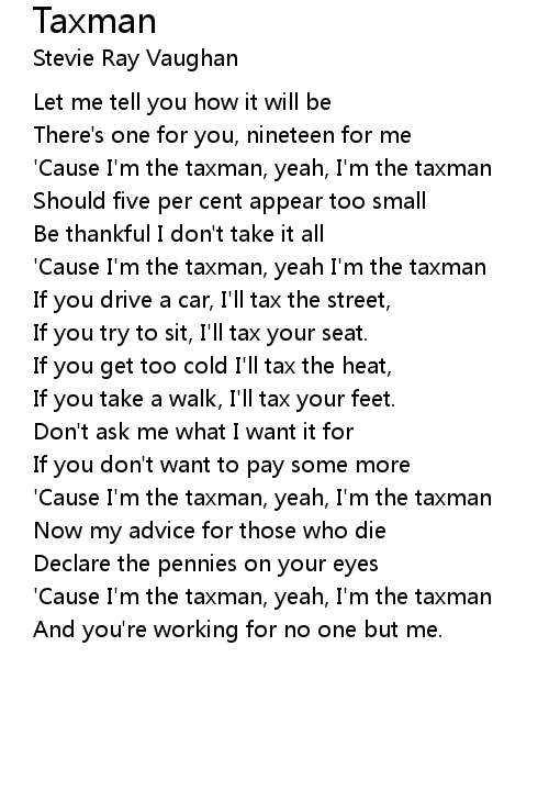 'Cause I'm the taxman, yeah, I'm the taxman |